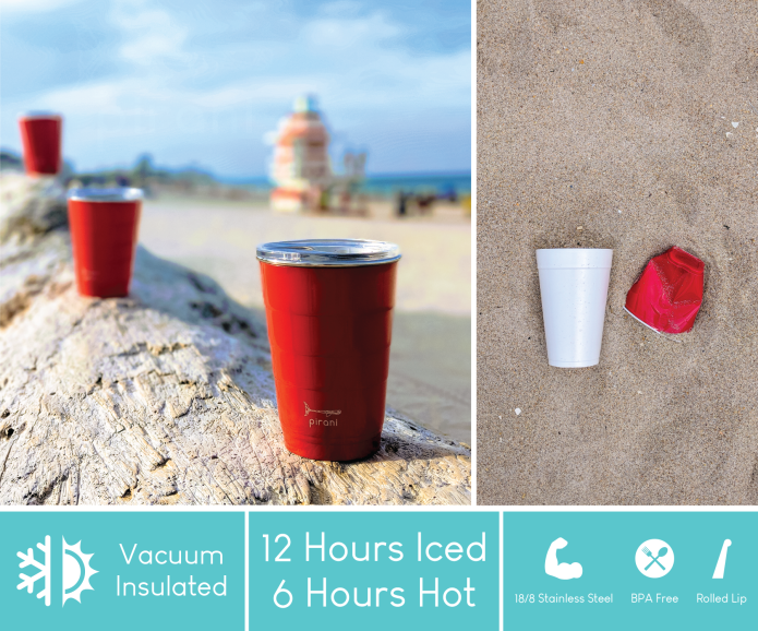 Pirani Party Tumbler - The Sustainable Party Cup Built With Vacuum Insulated Tech That’s Here To End Single Use Plastic.